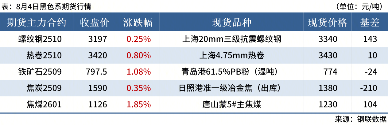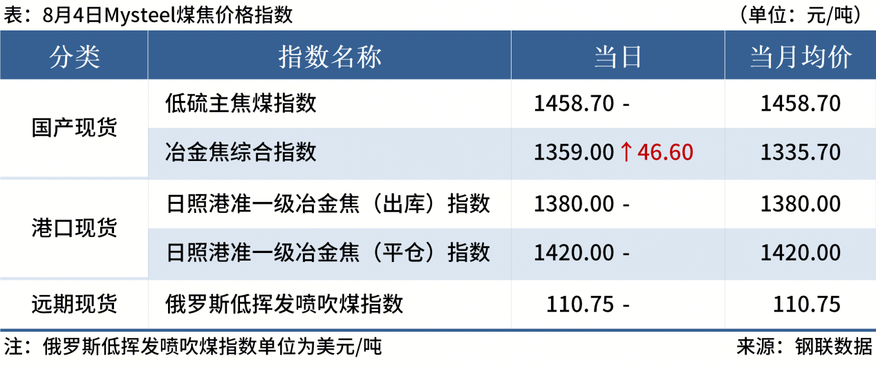 ◎ 焦炭第五輪提漲全面落地。河北、山東等地鋼廠針對焦炭采購價格進行上調(diào),濕熄漲幅50元/噸,干熄漲幅55元/噸,8月4日0時起執(zhí)行。
