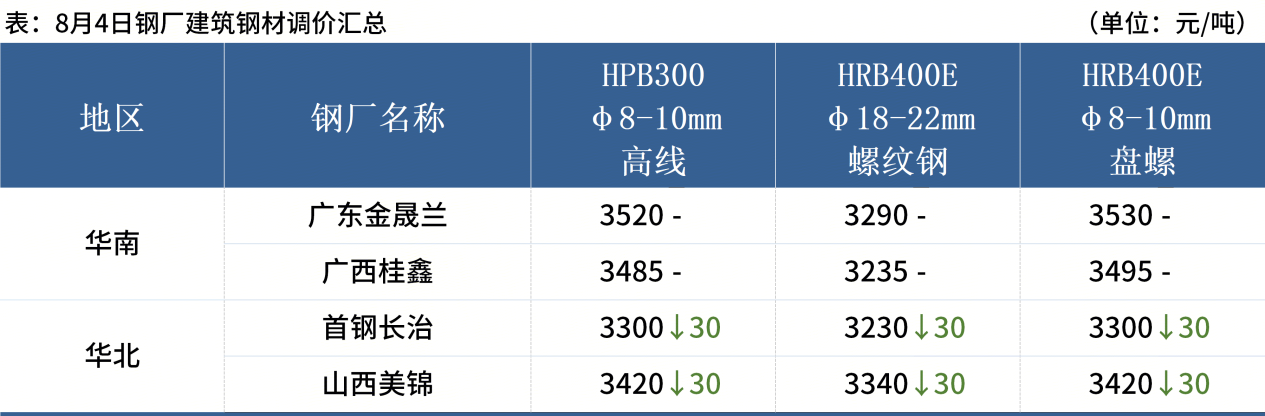 ◎ 8月4日,唐山遷安普方坯資源出廠含稅上調(diào)20,報3050元/噸。