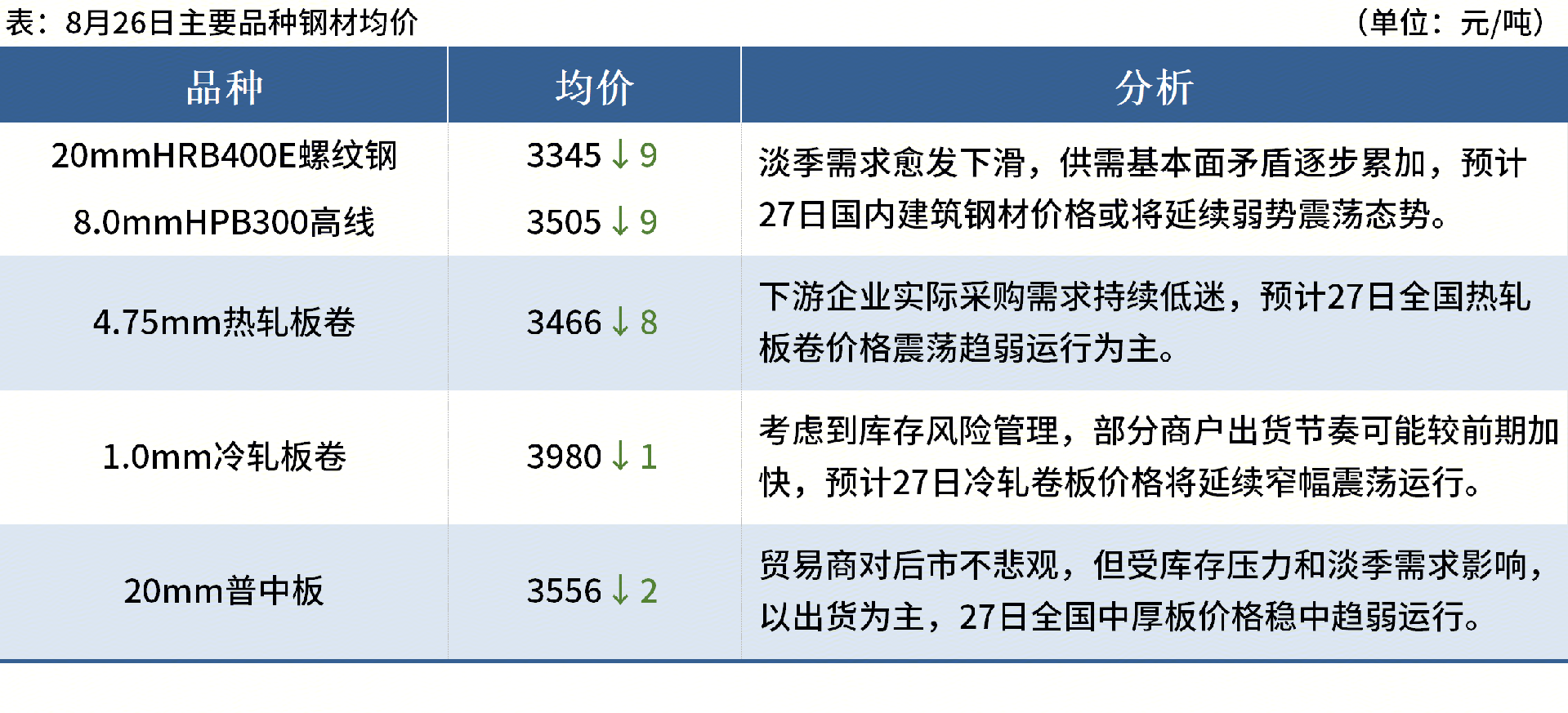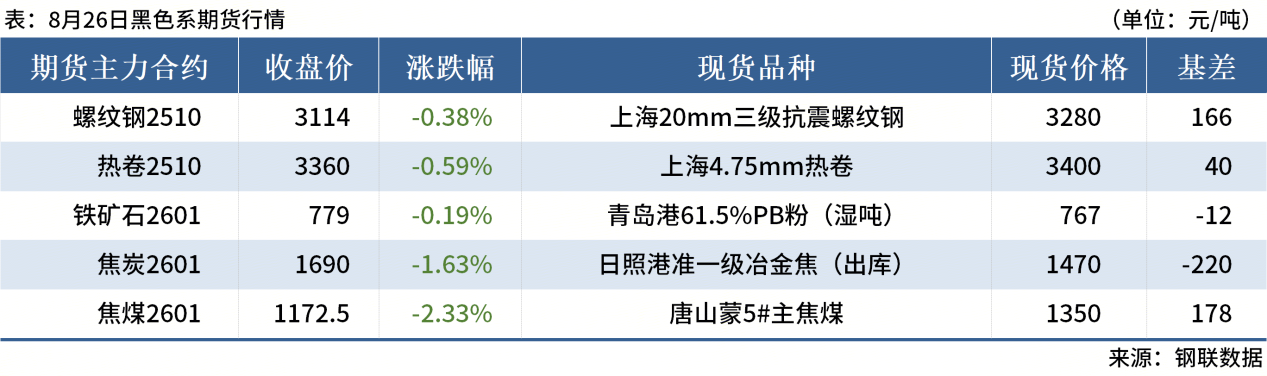 ◎8月26日,全國主港鐵礦石成交81.40萬噸,環(huán)比減27.3%;237家主流貿(mào)易商建筑鋼材成交8.31萬噸,環(huán)比減25.2%。
