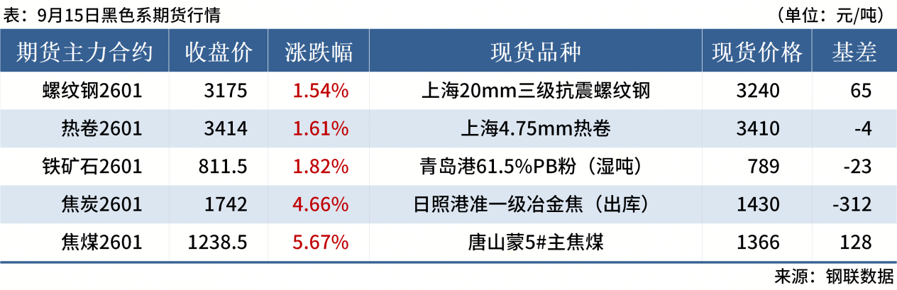 ◎ 9月15日,全國主港鐵礦石成交96.00萬噸,環(huán)比減13.9%;237家主流貿(mào)易商建筑鋼材成交11.76萬噸,環(huán)比增1%。