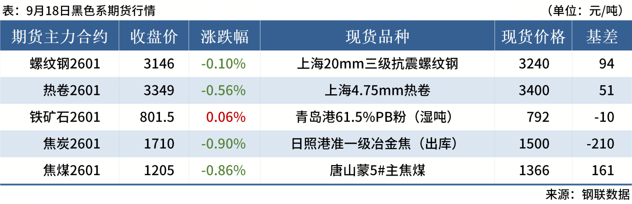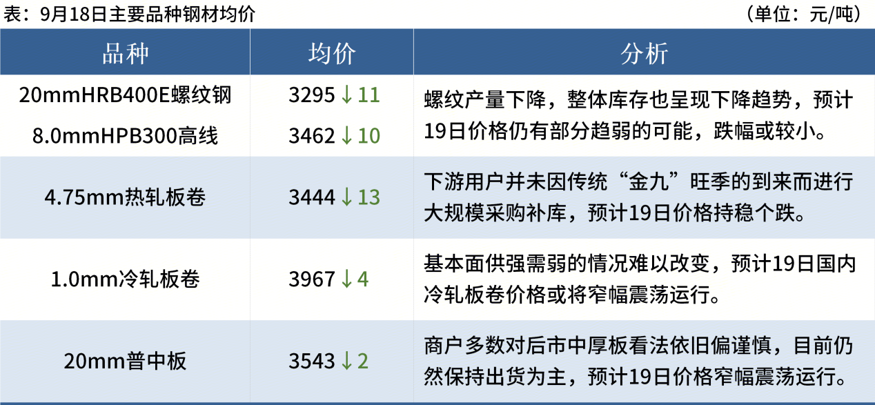 ◎ 9月18日,全國主港鐵礦石成交97.40萬噸,環(huán)比減23%;237家主流貿(mào)易商建筑鋼材成交8.78萬噸,環(huán)比減14.5%。