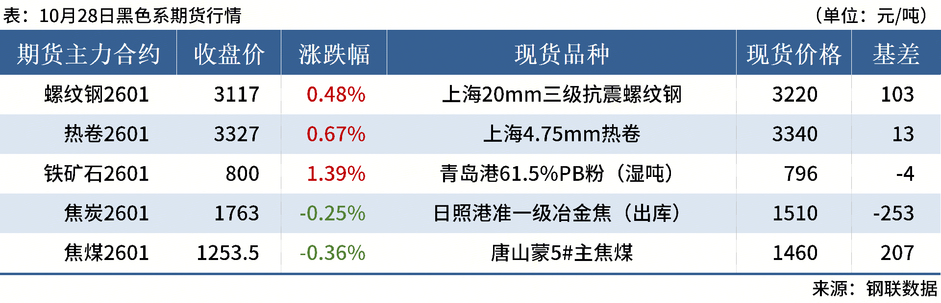 ◎ 10月28日,全國(guó)主港鐵礦石成交89.20萬(wàn)噸,環(huán)比增22.2%;237家主流貿(mào)易商建筑鋼材成交10.35萬(wàn)噸,環(huán)比減16.1%。
