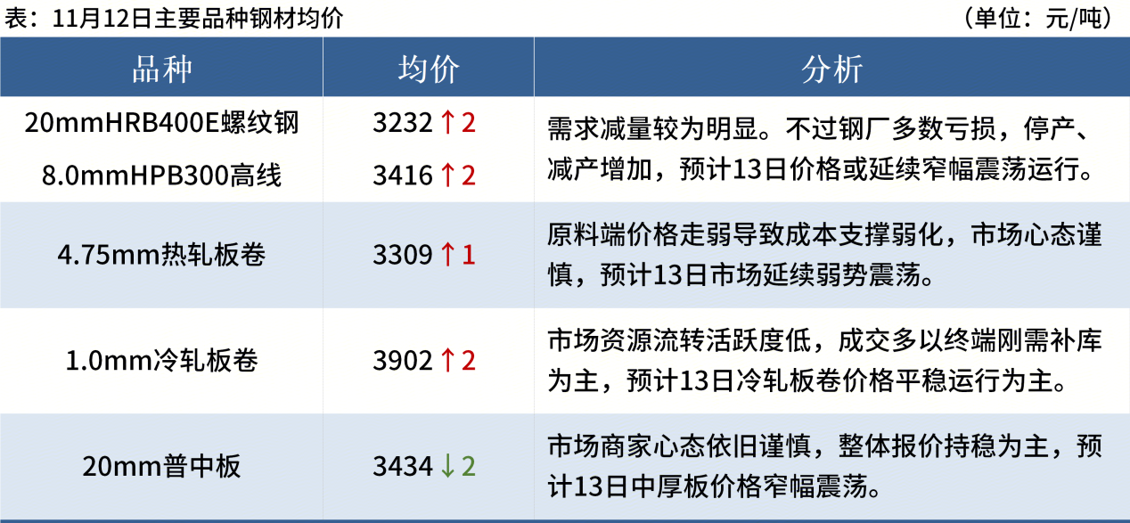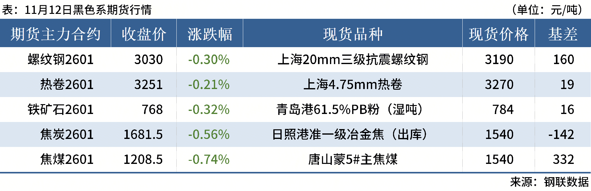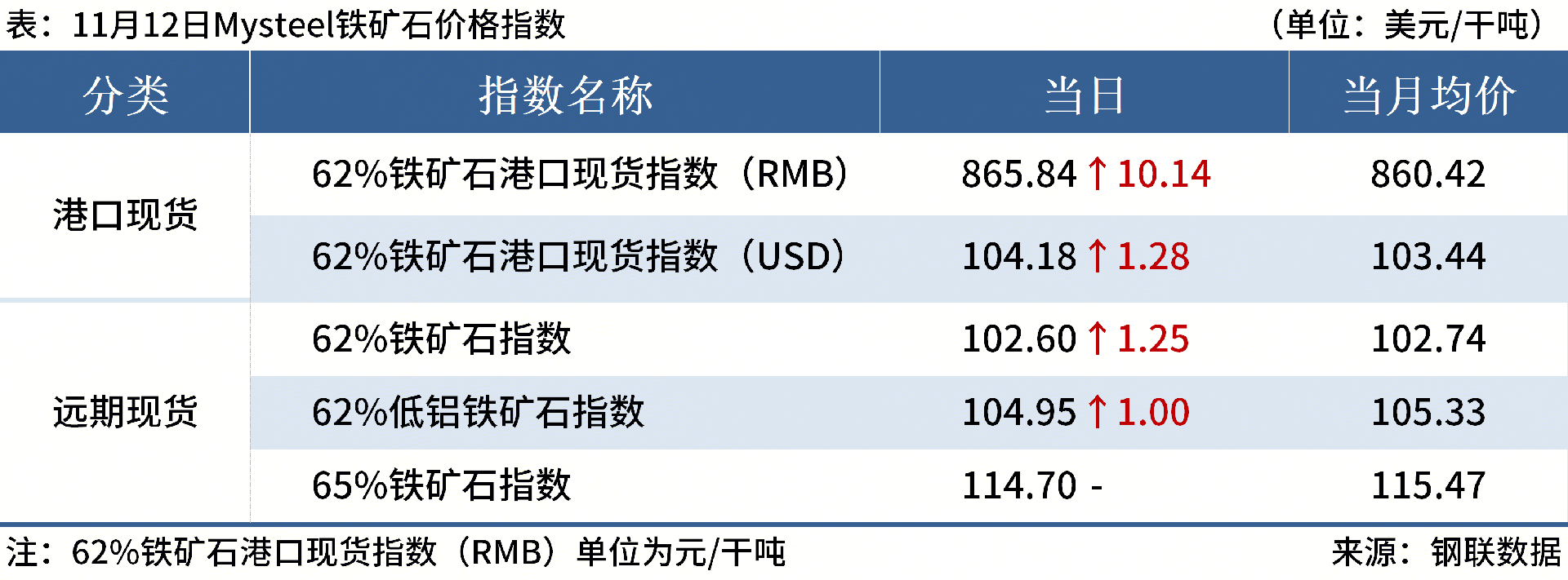 ◎ 11月12日,全國(guó)主港鐵礦石成交98.80萬(wàn)噸,環(huán)比減8.3%;237家主流貿(mào)易商建筑鋼材成交9.16萬(wàn)噸,環(huán)比增0.6%。