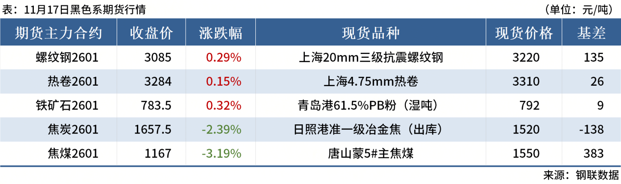 ◎11月17日,國內5家鋼廠上調建筑鋼材出廠價20-50元/噸。