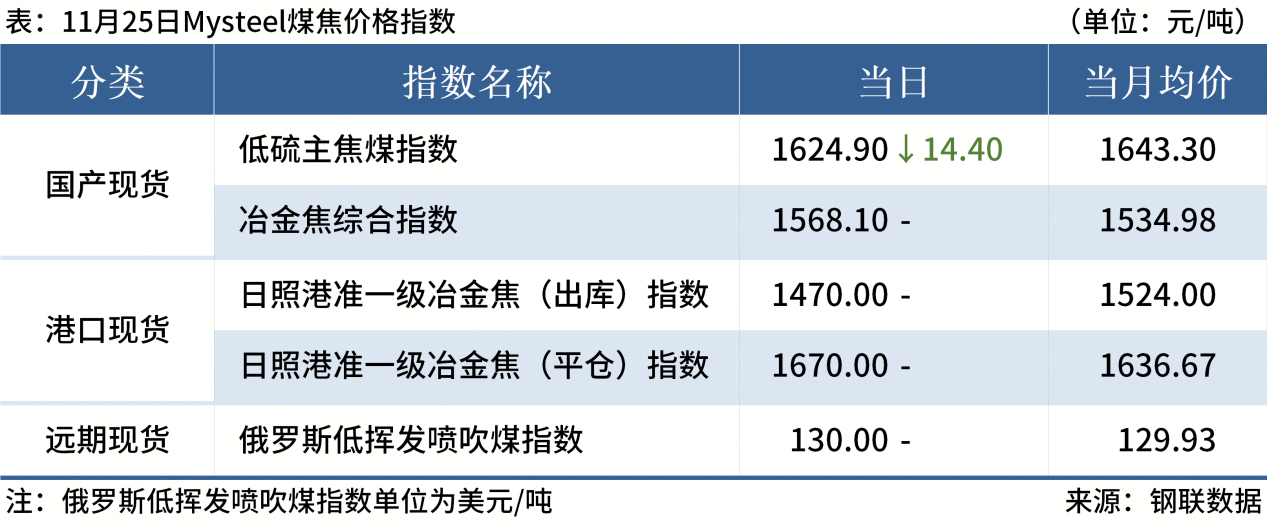 ◎ 11月25日,Mysteel進(jìn)口鐵礦石62%澳洲粉礦遠(yuǎn)期現(xiàn)貨指數(shù)105.6美元/干噸,漲0.85美元/干噸;65%巴西粉礦遠(yuǎn)期現(xiàn)貨指數(shù)118.15美元/干噸,漲0.8美元/干噸。