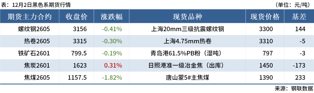 ◎四川都鋼鋼鐵于2025年12月2日臨時停產,預計到12月6日復產,減少建筑鋼材日產約2000噸左右。