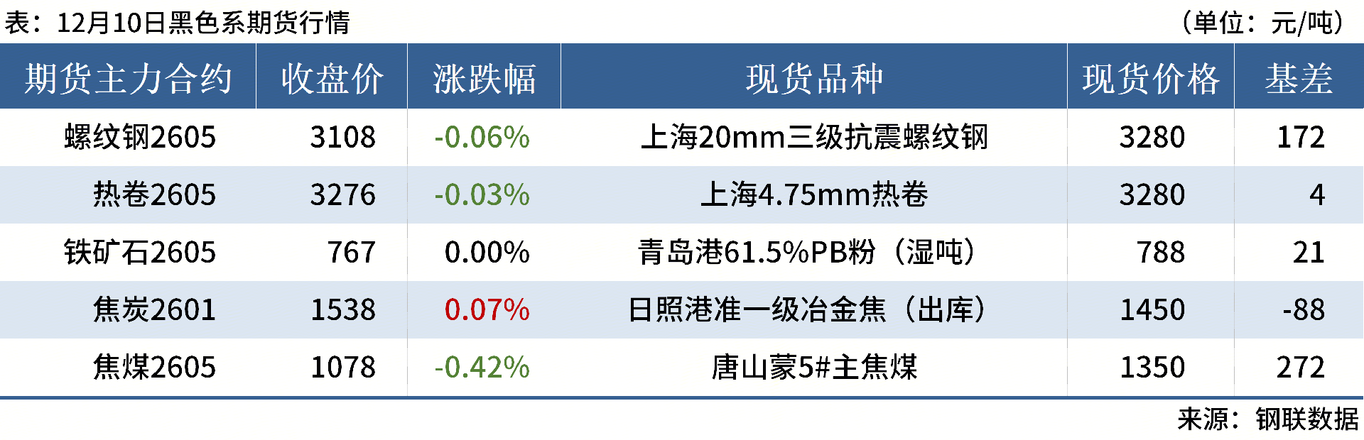 ◎ 12月10日,全國(guó)主港鐵礦石成交71.50萬(wàn)噸,環(huán)比減37.1%;237家主流貿(mào)易商建筑鋼材成交11.43萬(wàn)噸,環(huán)比增23.5%。