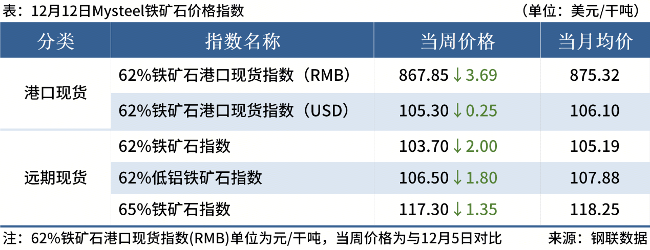 ◎ 12月12日,全國主港鐵礦石成交87.60萬噸,環(huán)比減11.6%;237家主流貿(mào)易商建筑鋼材成交9.05萬噸,環(huán)比減1.9%。