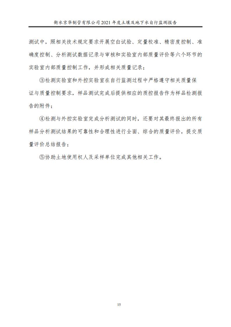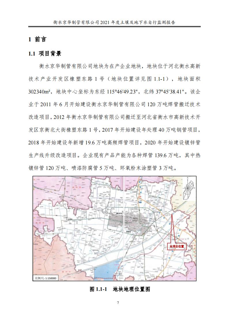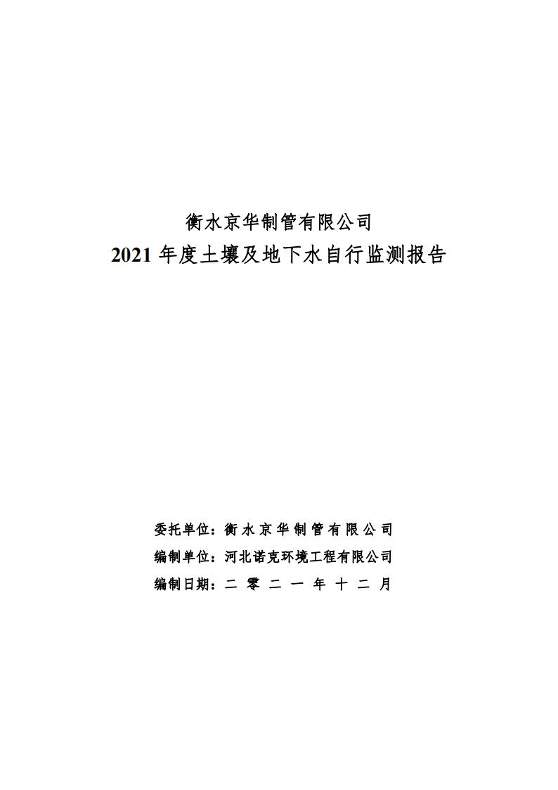 衡水京華制管有限公司2021年度土壤及地下水自行監(jiān)測報告