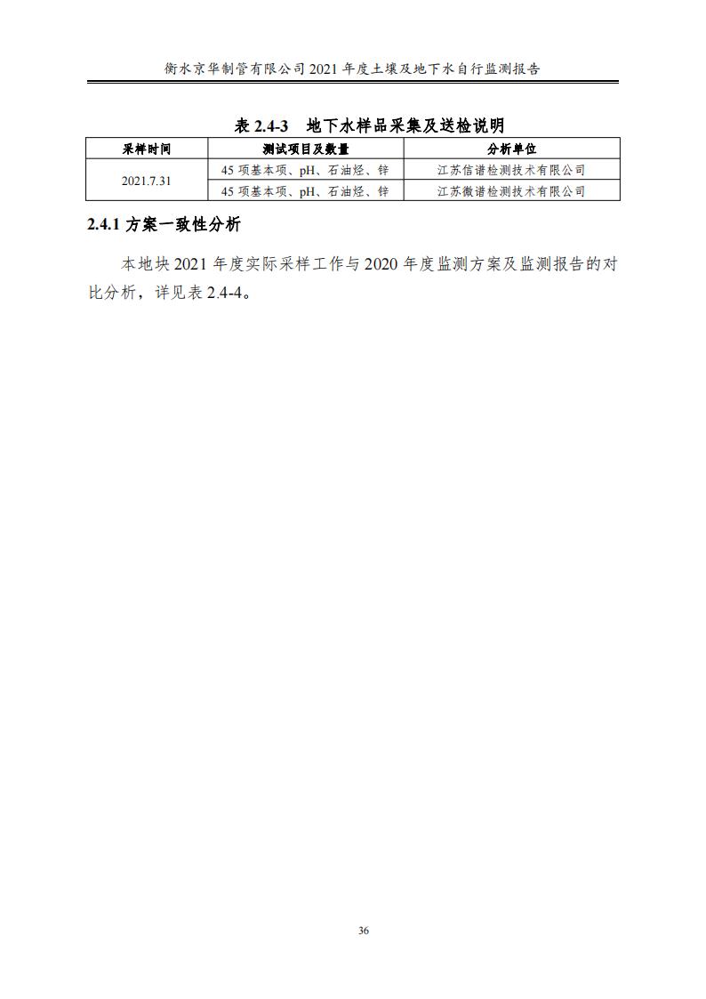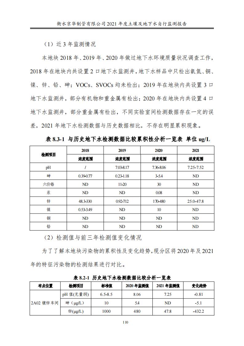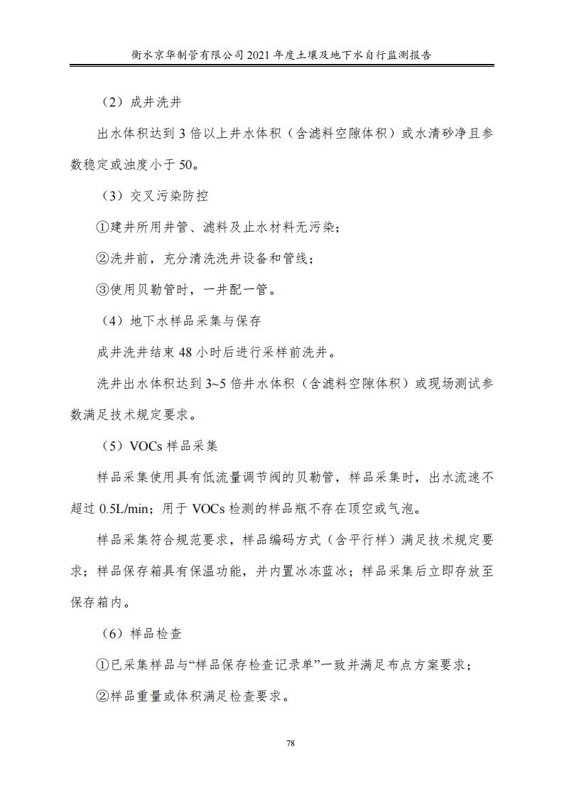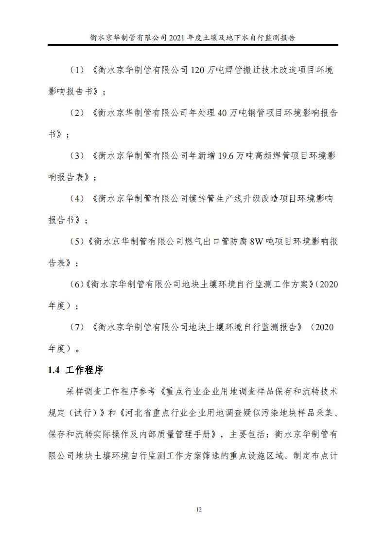 衡水京華制管有限公司2021年度土壤及地下水自行監(jiān)測報告